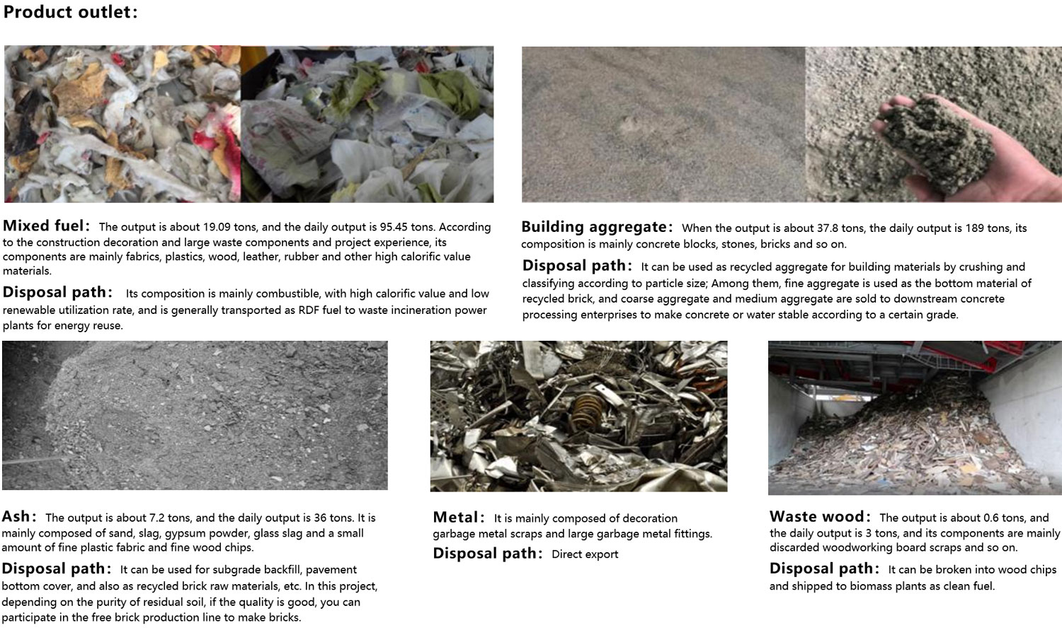 Scale: Domestic waste 100 tons/day, construction decoration waste 300 tons/day, large waste 10 tons/day