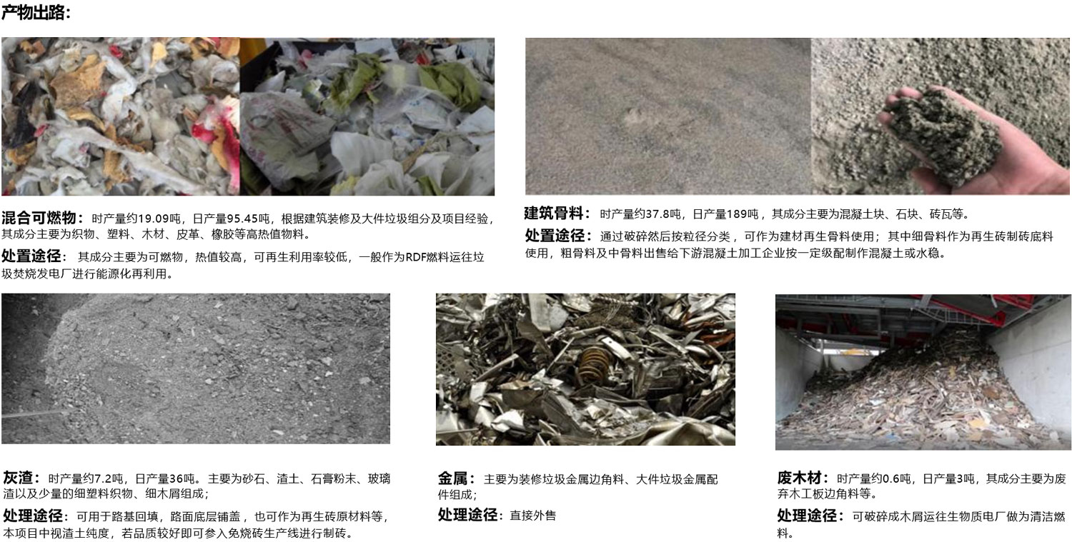 规模:生活垃圾100吨/天、建筑装修垃圾 300吨/天,大件垃圾10吨/天